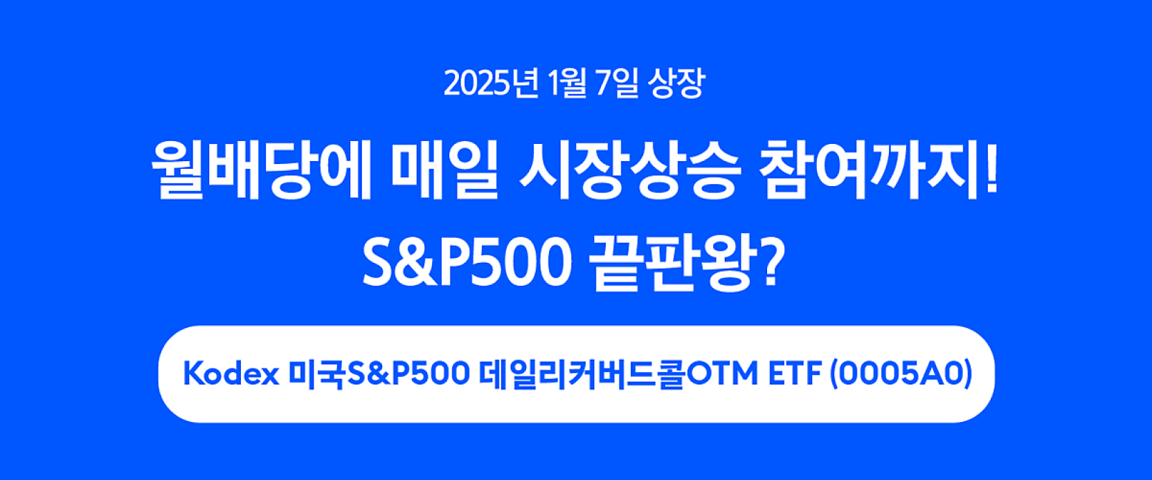미국의 대표 기업에 투자하며 월배당도 받아볼 수 있는 Kodex 미국S&P500데일리커버드콜OTM ETF가 다가오는 2025년 1월 7일에 상장합니다. 많은 관심 부탁드립니다!