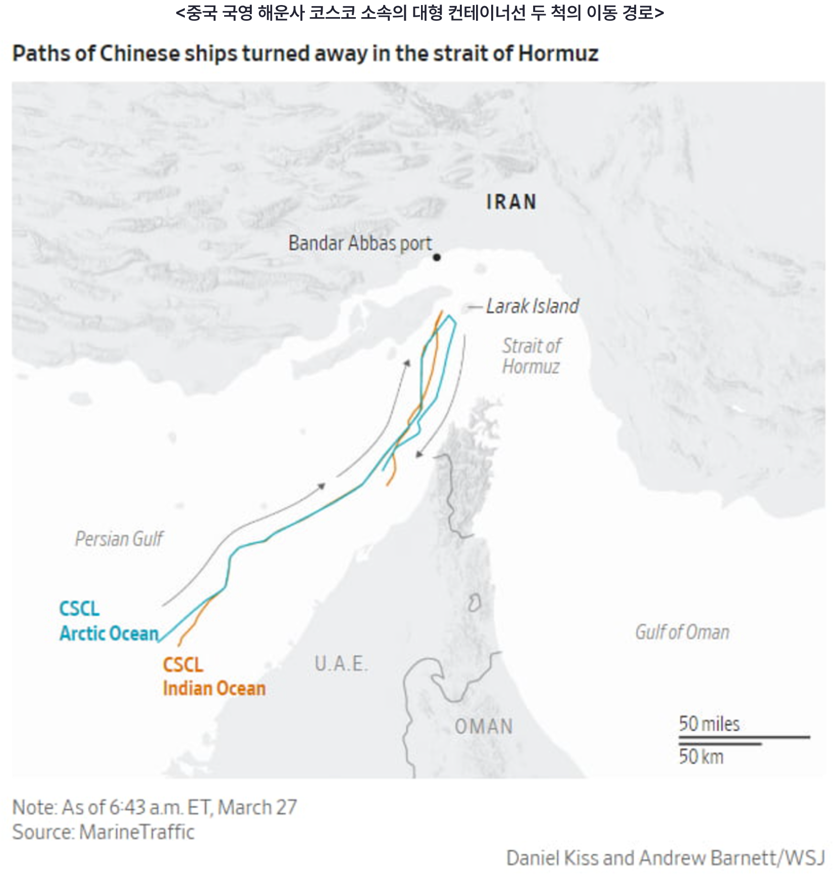 트럼프 대통령은 지난 26일 이란이 호르무즈 해협을 재개방하지 않으면 발전소를 파괴하겠다는 ‘최후통첩’ 시한을 오는 4월 6일까지로 연장했지만 호르무즈 해협은 여전히 막혀 있는 상황입니다. 특히 이란이 최근 우호국으로 분류되는 중국 선박의 호르무즈 해협 통과마저 차단하면서 시장의 우려가 더 커졌는데요.